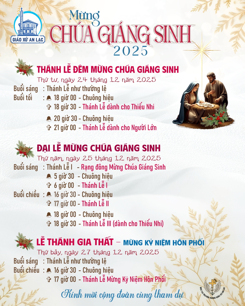 • Lễ Giáng Sinh (25/12) 06:00, 17:00, 18:30