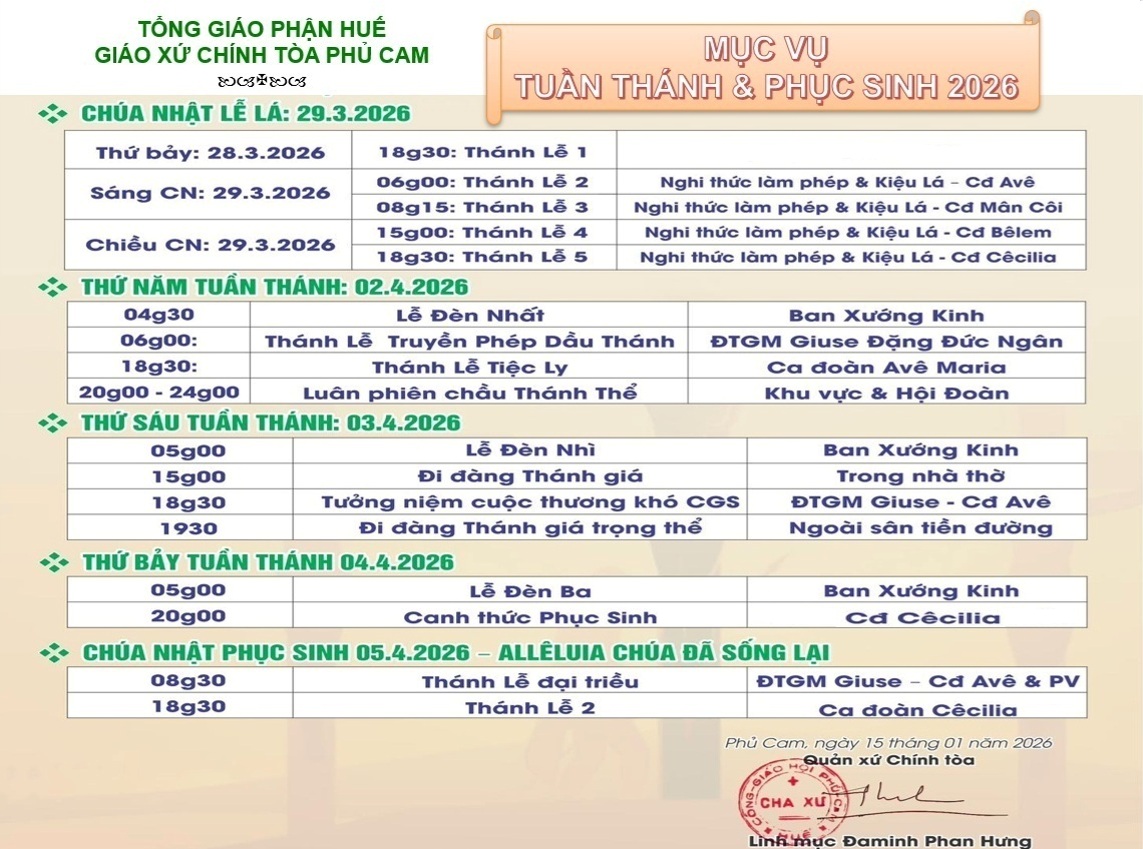 Giờ Lễ Nhà Thờ Giáo Xứ Phủ Cam