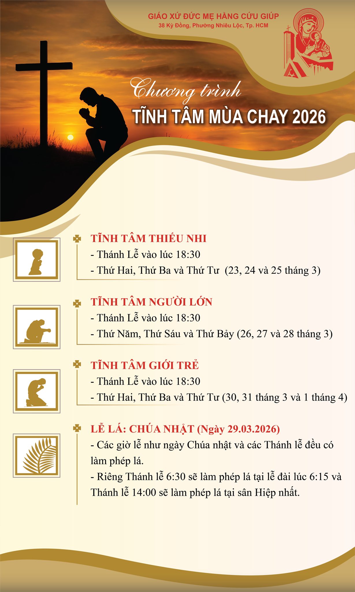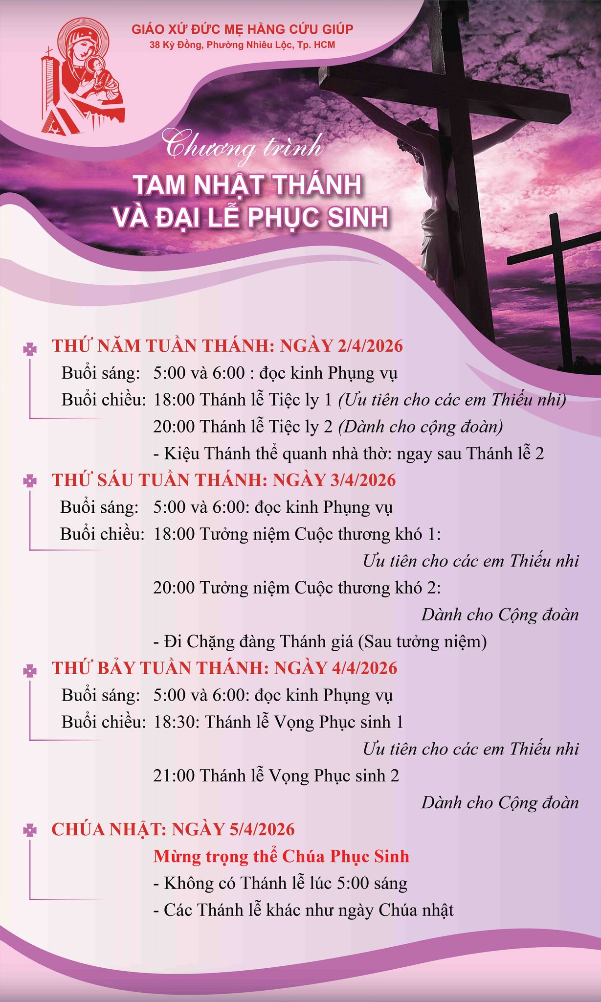 • Lễ Giáng Sinh (25/12) 06:00, 08:00, 17:00, 18:30, 20:00