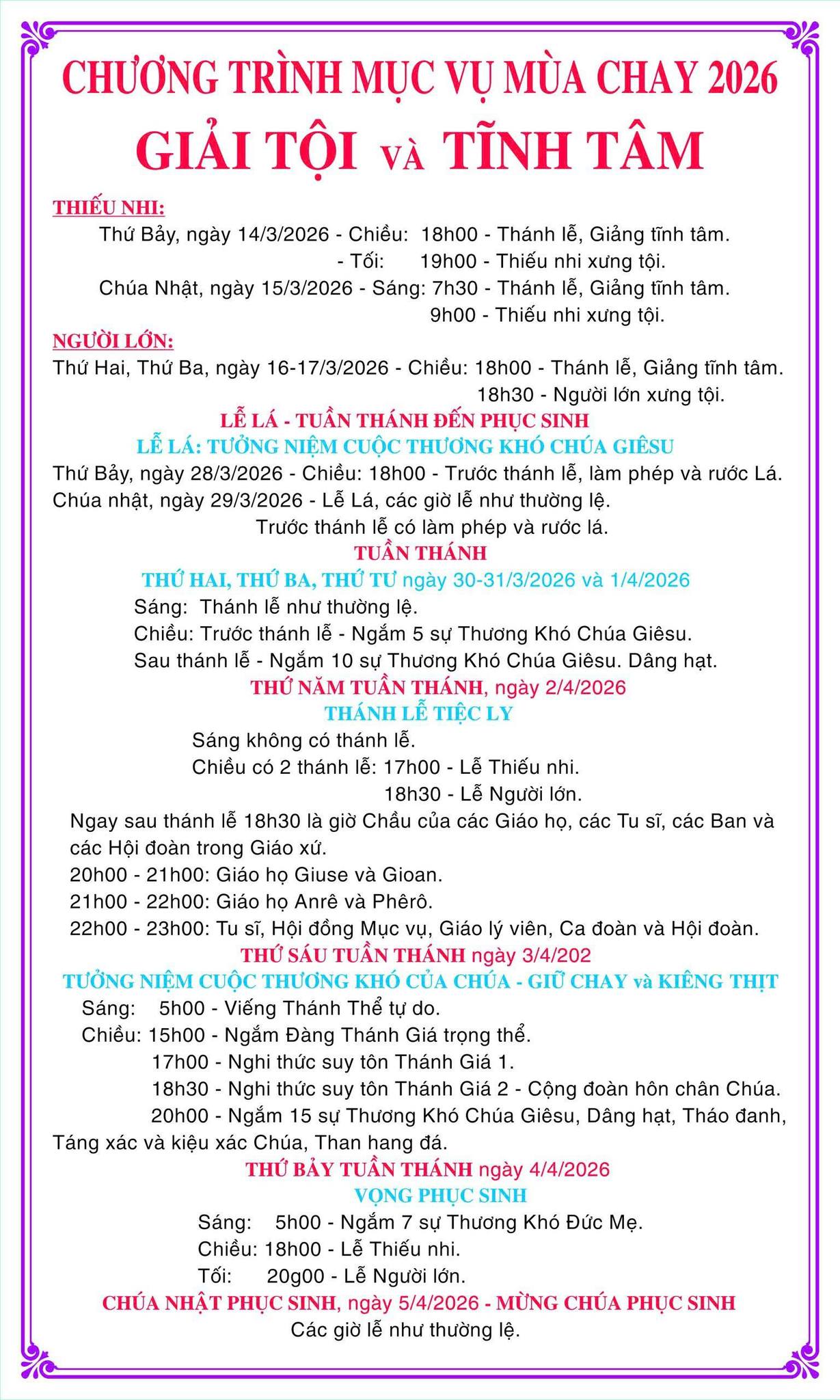 Giờ lễ và các thông tin có thể bị thay đổi hoặc sai hoặc thiếu do đó rất mong quý Tu Sĩ, Anh Chị gởi thông tin về email giothanhle.net@gmail.com để được bồ sung, sữa chửa kịp thời