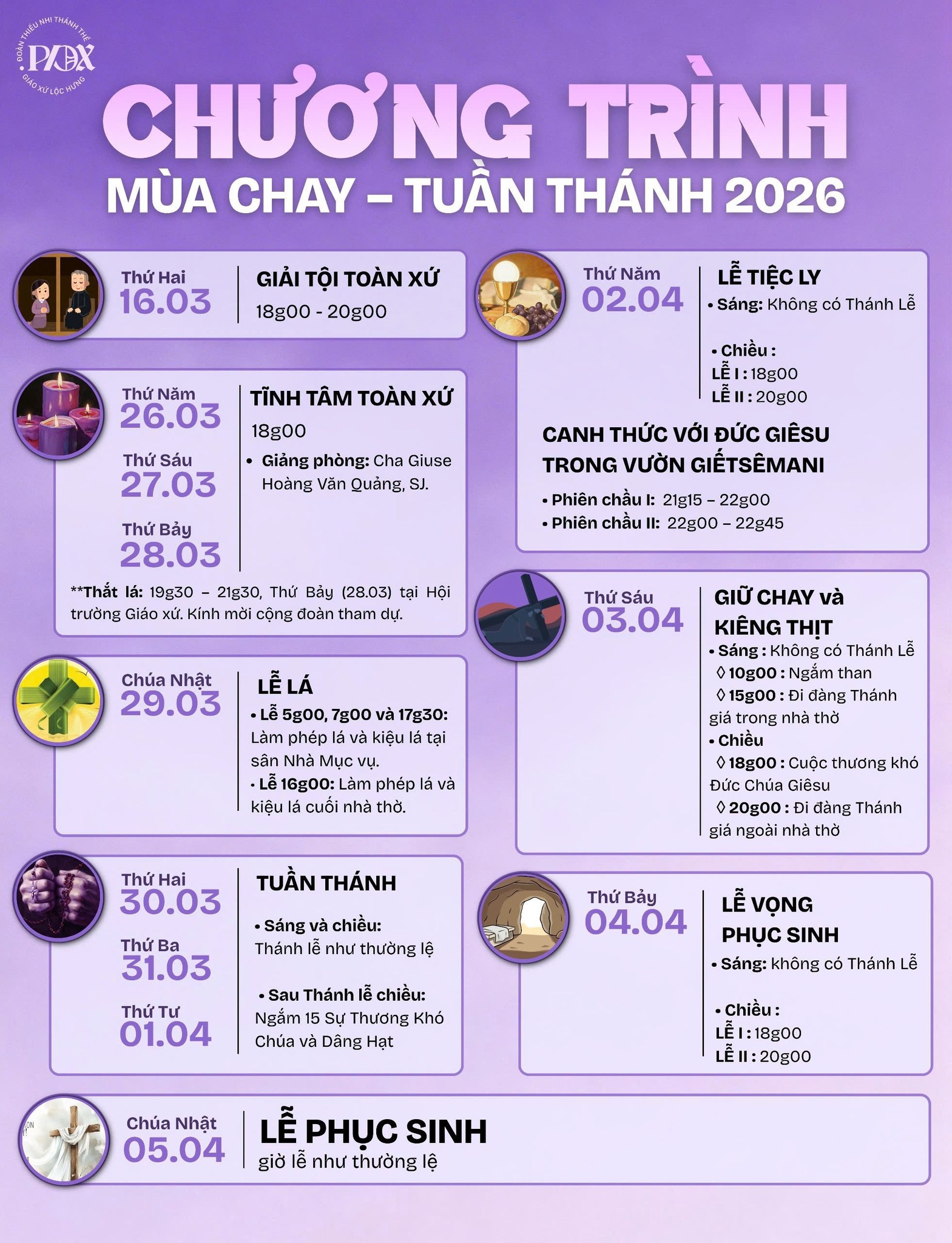 Giờ lễ và các thông tin có thể bị thay đổi hoặc sai hoặc thiếu do đó rất mong quý Tu Sĩ, Anh Chị gởi thông tin về email giothanhle.net@gmail.com để được bồ sung, sữa chửa kịp thời