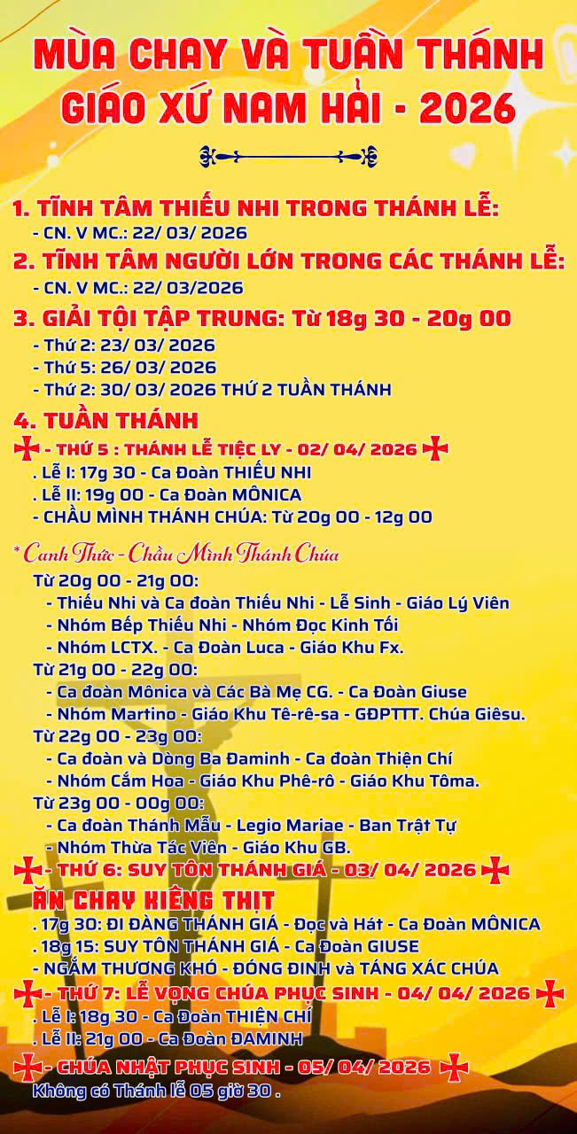 Giờ lễ và các thông tin có thể bị thay đổi hoặc sai hoặc thiếu do đó rất mong quý Tu Sĩ, Anh Chị gởi thông tin về email giothanhle.net@gmail.com để được bồ sung, sữa chửa kịp thời
