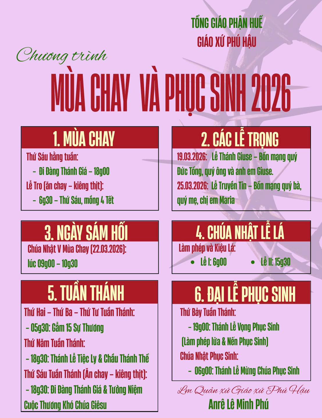 Giờ Lễ Nhà Thờ Giáo Xứ Phú Hậu