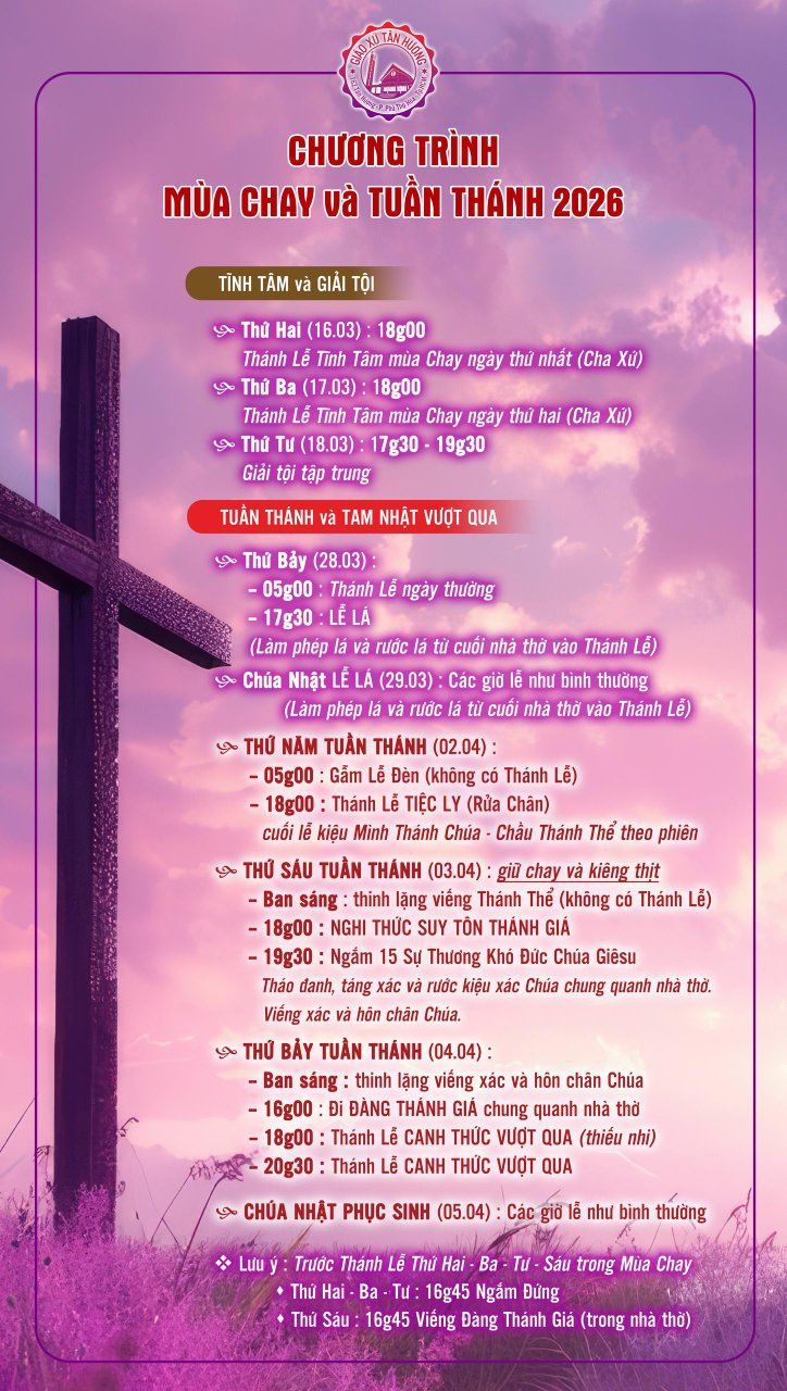 Giờ lễ và các thông tin có thể bị thay đổi hoặc sai hoặc thiếu do đó rất mong quý Tu Sĩ, Anh Chị gởi thông tin về email giothanhle.net@gmail.com để được bồ sung, sữa chửa kịp thời