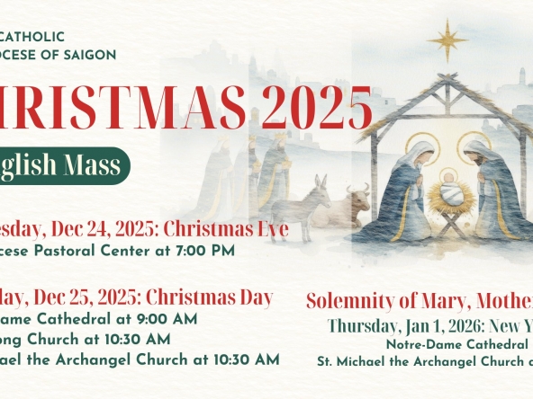 Lịch lễ Tết Nguyên Đán 2025 tại các Nhà thờ TP. HCM, Hà Nội và các nhà thờ ở các tỉnh thành khác, Mọi sự đóng góp xin comment bên dưới hoặc email lienkhuong@gmail.com. Giờ Thánh Lễ kính chúc Quý Cha, Tu Sĩ Nam Nữ và toàn thể Anh Chị Em một năm mới tràn đầy hồng ân Thiên Chúa!